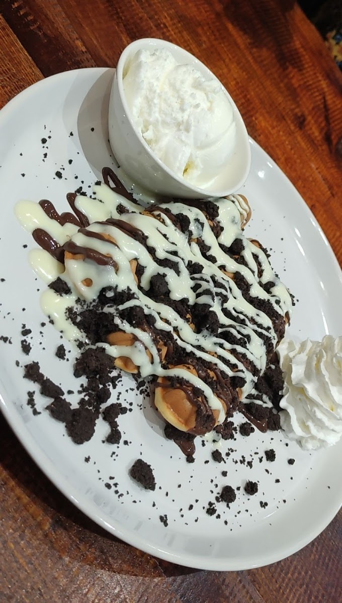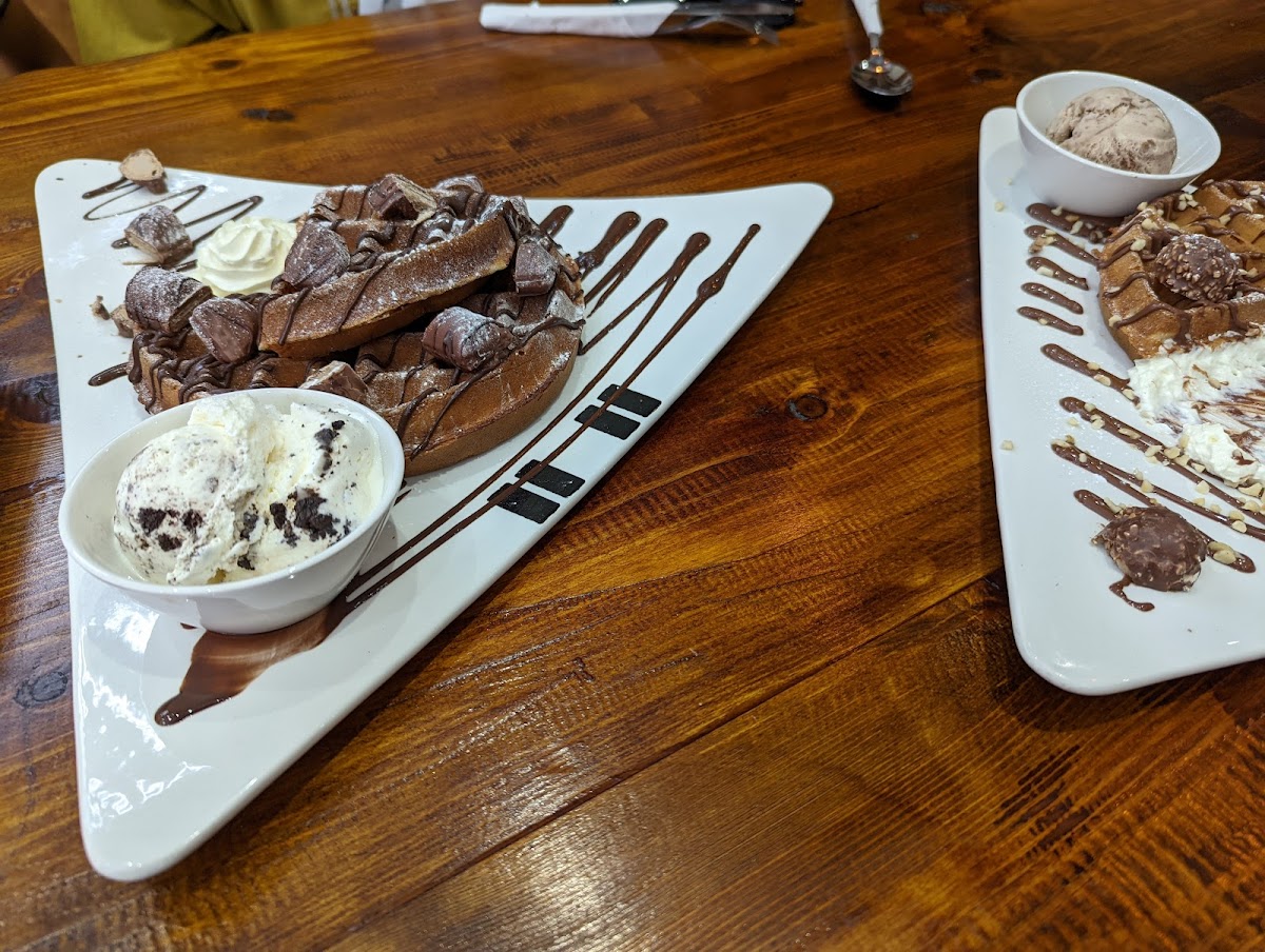 One of the standout highlights on the menu is the Forbidden Fruit, a decadent creation that balances rich flavors with a hint of tangy freshness. For those who enjoy a nostalgic, fun vibe, the Bubblegum Sundae never fails to spark joy with its vibrant presentation and playful taste. Ice cream lovers will find themselves spoiled for choice with the Scoops Gelato, available in a variety of irresistible flavors that are creamy, smooth, and perfectly portioned. Meanwhile, the Cookies and Cream Premium Waffles deliver a satisfying crunch paired with luscious creaminess, making each bite a little moment of happiness. And for those who crave a classic Italian dessert, the Tiramisu at Krispy Krumbles is elegantly light yet satisfyingly rich, providing a perfect end to any meal.